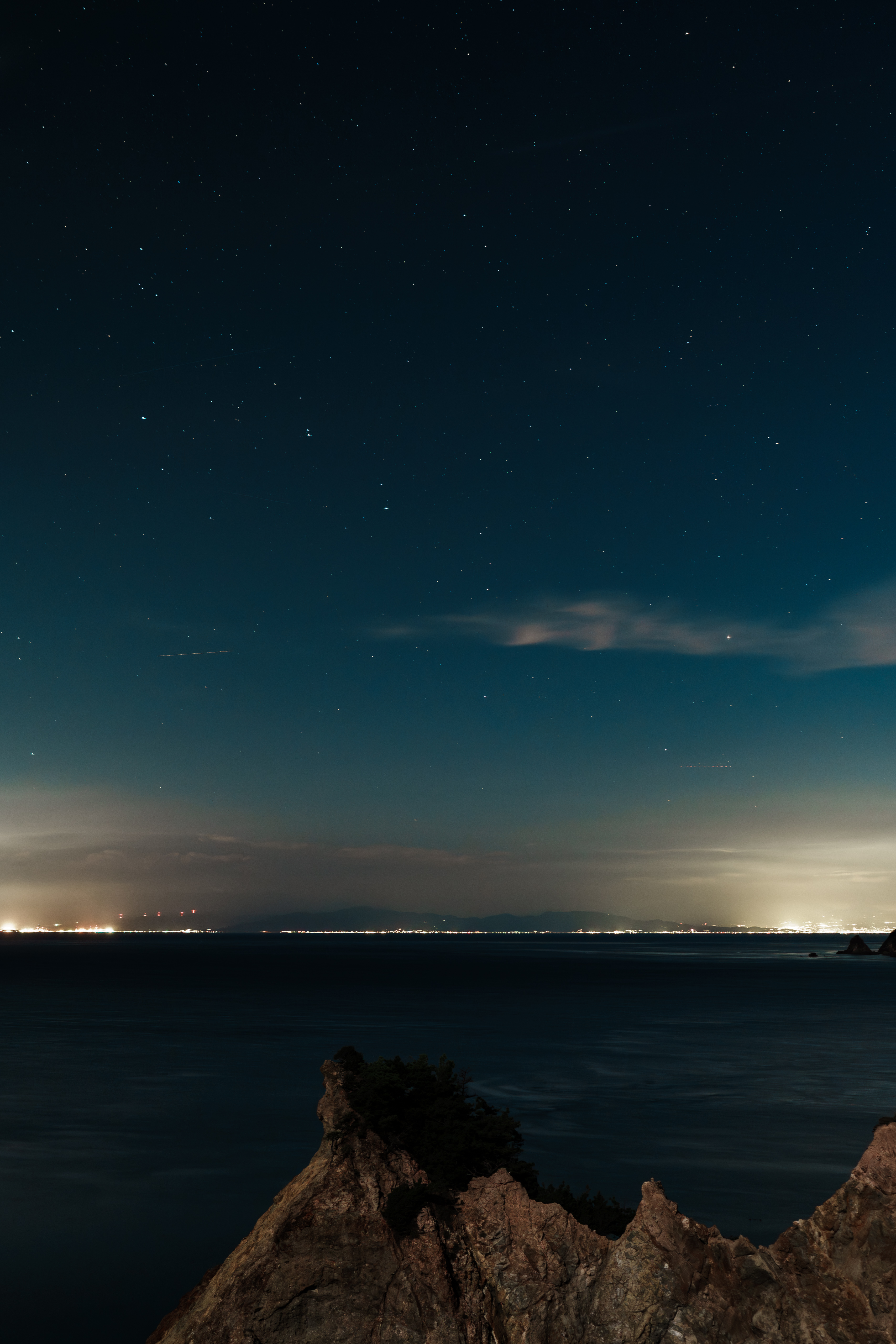 夜のうちに移動し、伊豆半島の東側・城ヶ崎海岸までくると、今度は灯台が佇む崖の上でプレアデス星団にであう。