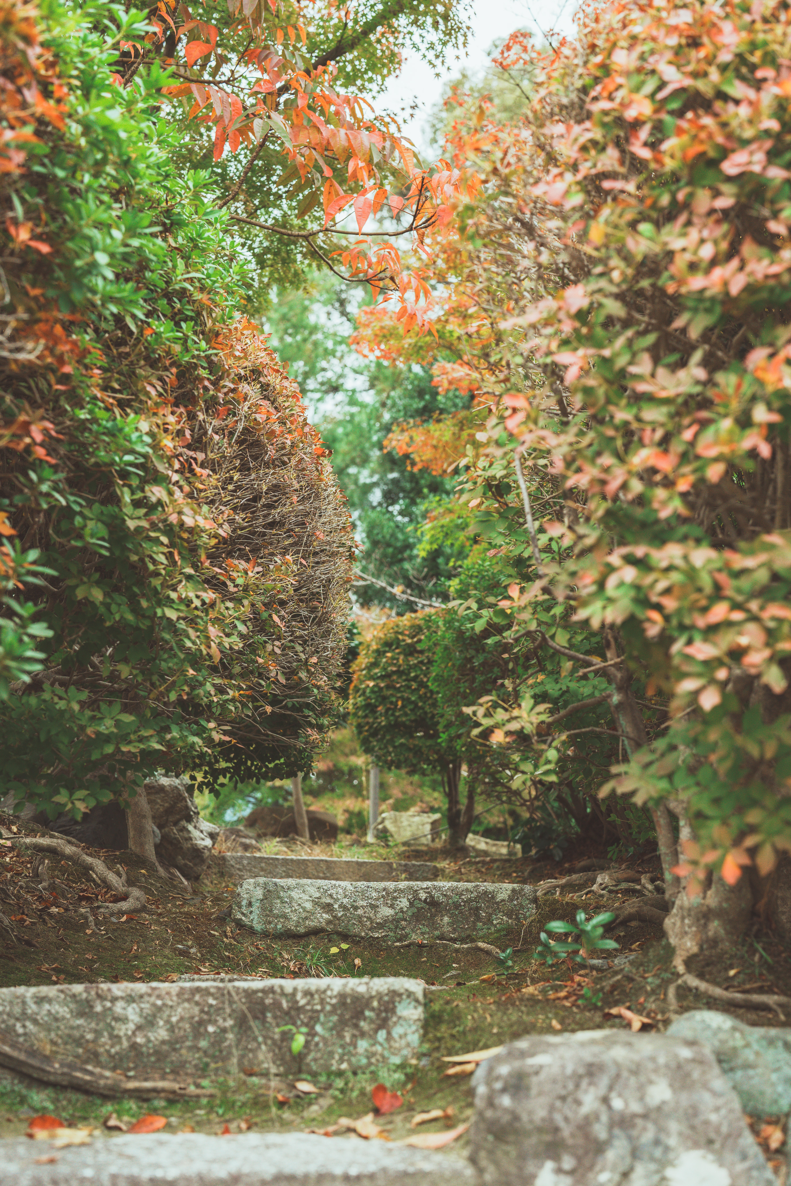 そんな中でも、ここのモミジだけはまばらながら赤く染まり始まった。赤と緑が交わるそんな時節もまたいい。疲れた神経に一時の安寧を頂いた。