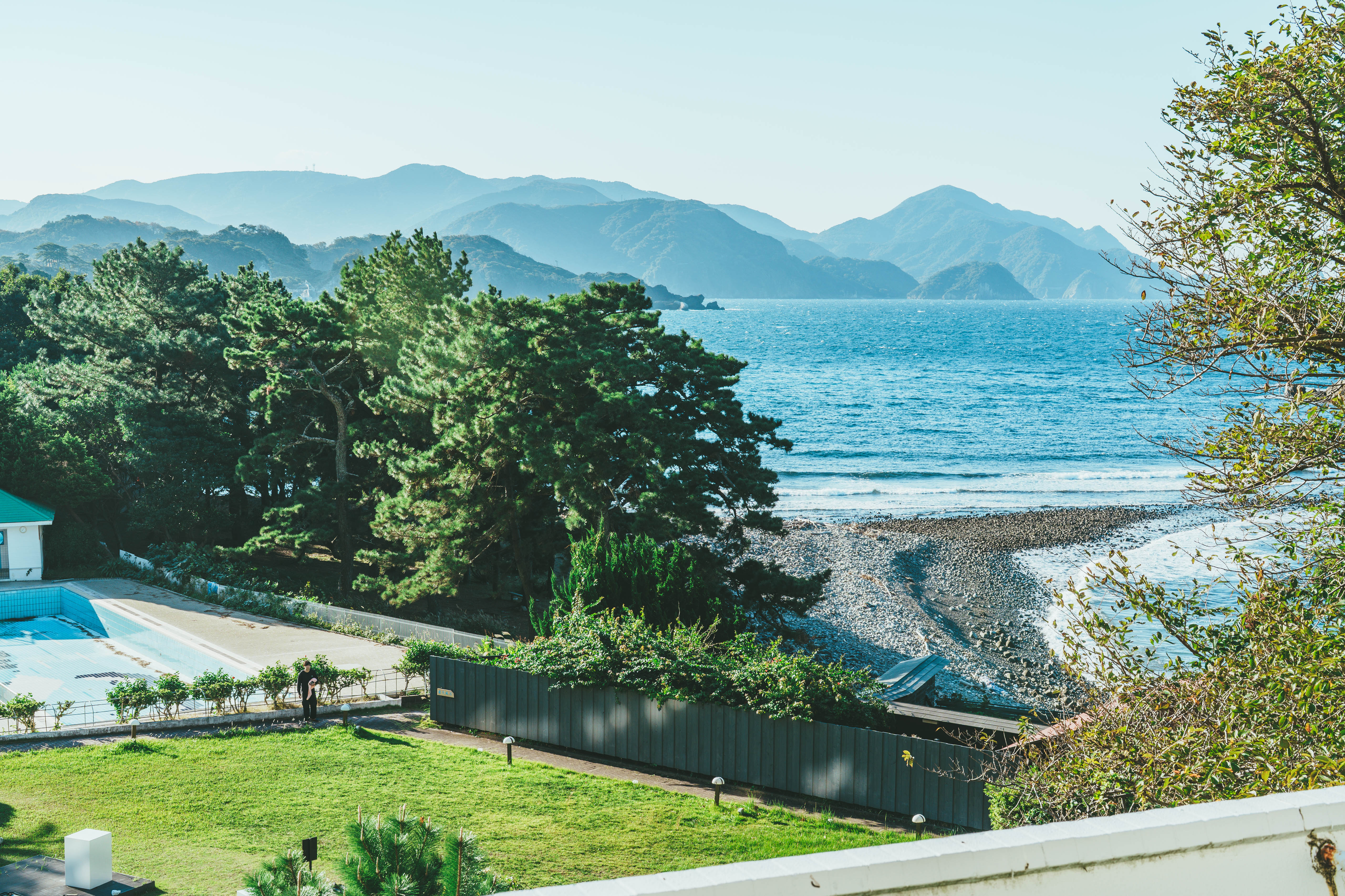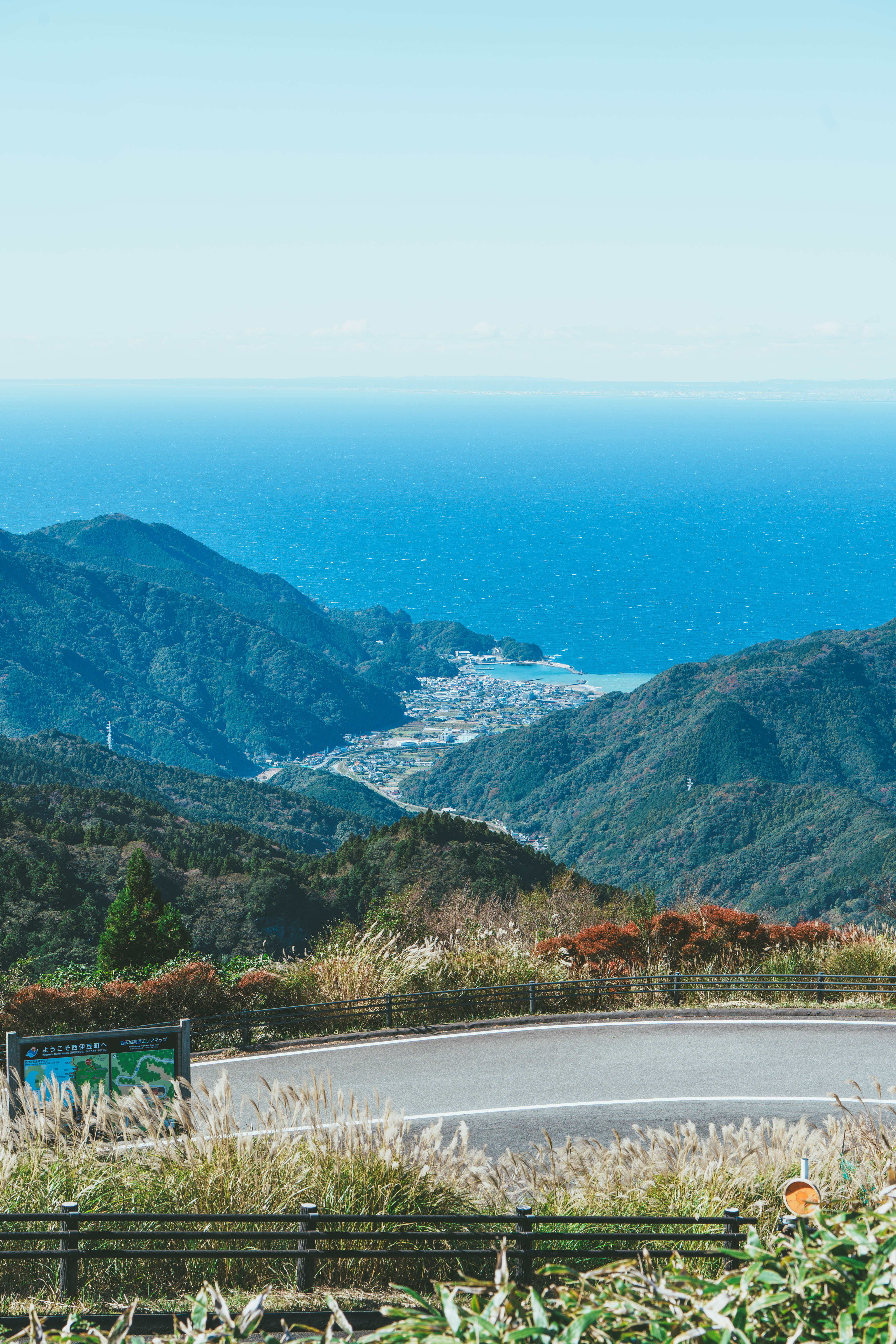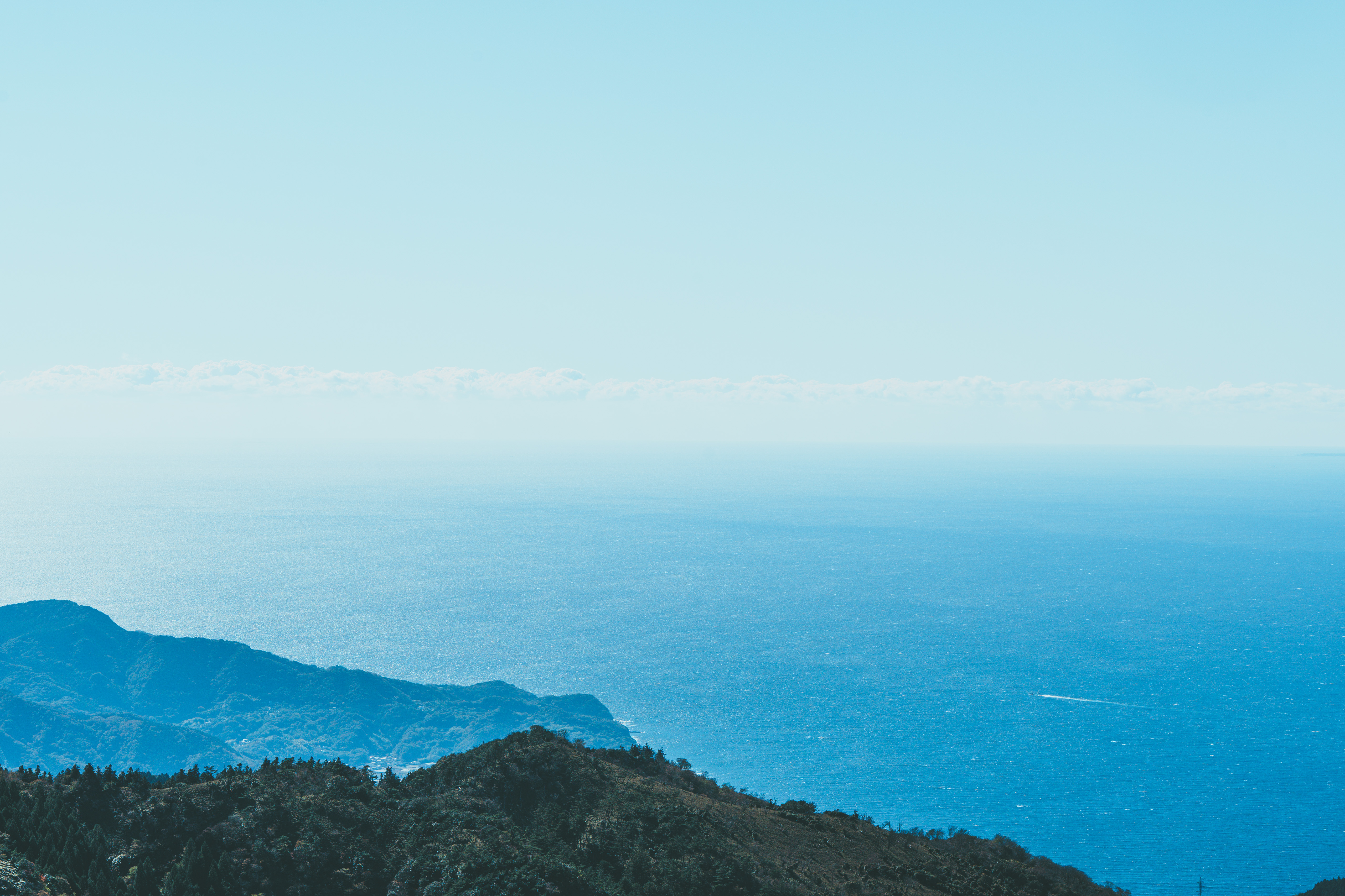 あくまでプチ登山というところですが、ここは初心者に優しい達磨山。洗ったような青空と、海風にそよぐ笹の葉が手招いてくれる。生憎富士山は山頂を雲に隠しているが、近くの戸田港は惜しげなく全容を見せてくれた。